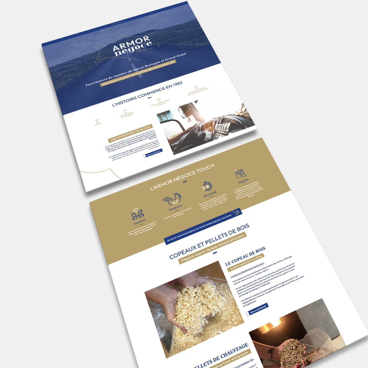Armor Négoce a choisi de créer un site one-page afin de présenter ses produits et services de manière synthétique et percutante.