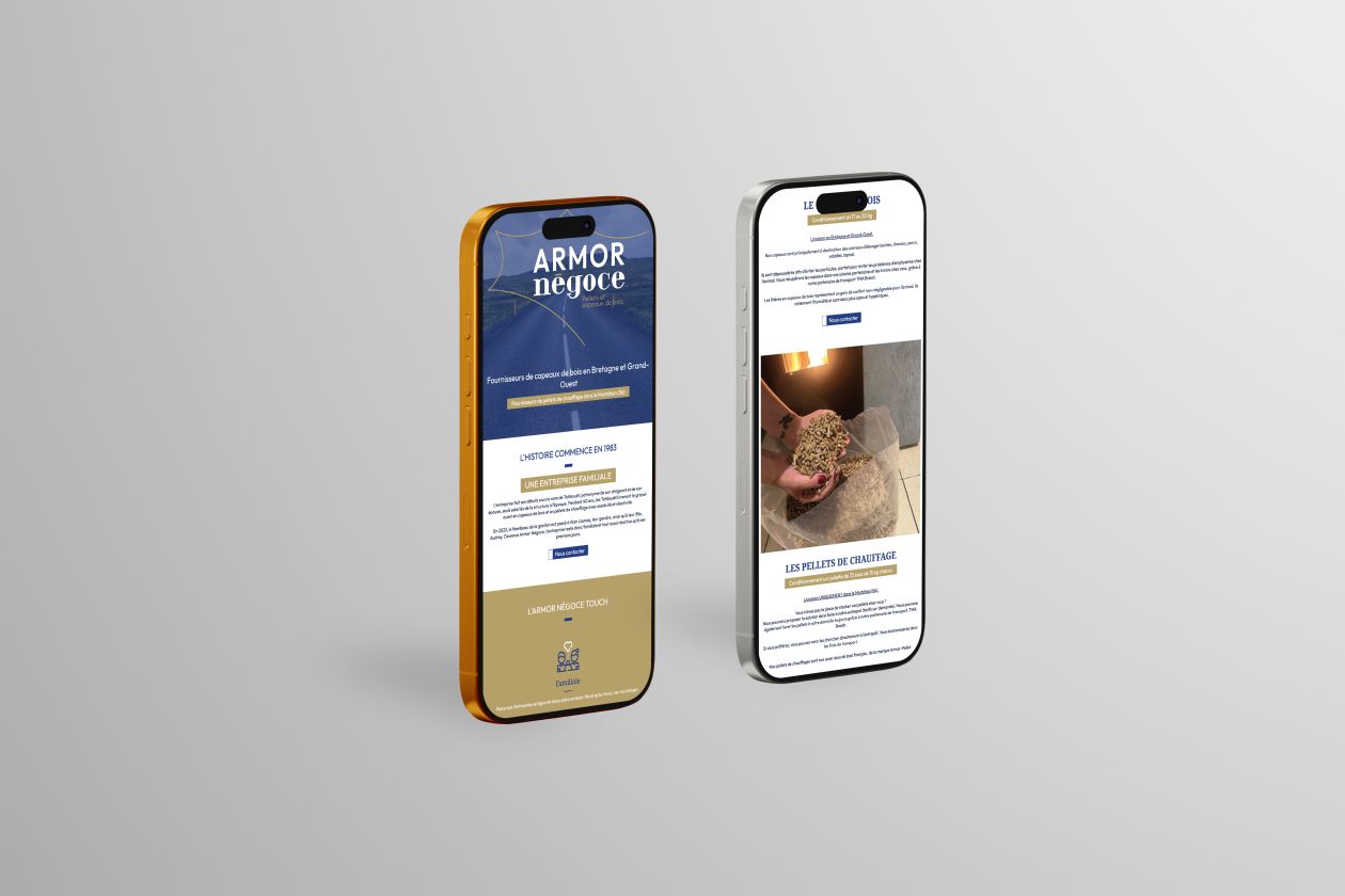 Cette collaboration a permis de livrer un site one-page attractif, moderne et parfaitement aligné avec l’image et la communication d’Armor Négoce.